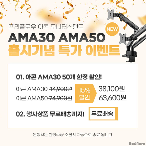 0 Response to "프리플로우, 높낮이 조절이 수월한 모니터암 2종 아콘 AMA30/AMA50 출시 - 보드나라 (Bodnara)"