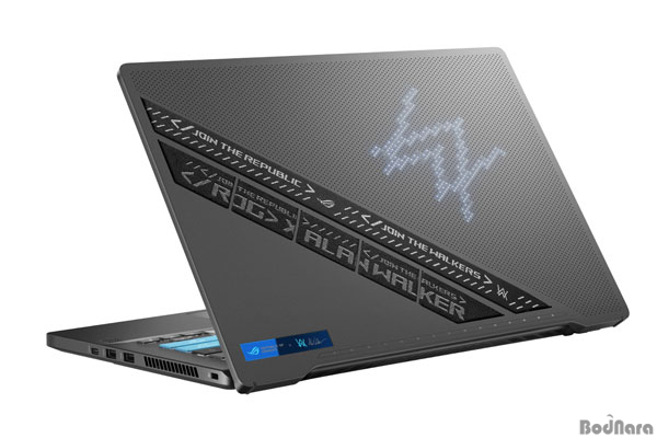 특히, ROG Remix 기능이 탑재돼 키보드 맵핑을 통해 시각 효과와 음향 효과를 노트북 화면에 표시할 수 있다. 알렌 워커의 곡을 비롯해 다양한 음악을 선택해 리믹스 작업이 가능하다. 또, 노트북 상판에 마이크로 LED로 애니메이션, 텍스트, 오디오 비주얼라이저 등을 커스터마이징할 수 있는 AniMe Matrix 기능에 알렌 워커의 테마 컬러인 스펙터 블루 LED와 ROG X Alan Walker 로고, 패션 패치 등을 지원한다. 키보드에는 알렌 워커의 이니셜인 A와 W의 키캡에 알렌 워커 로고로 커스터마이징 됐고, 하판에는 알렌 워커의 히든 메시지가 2진수 코드로 삽입됐다.